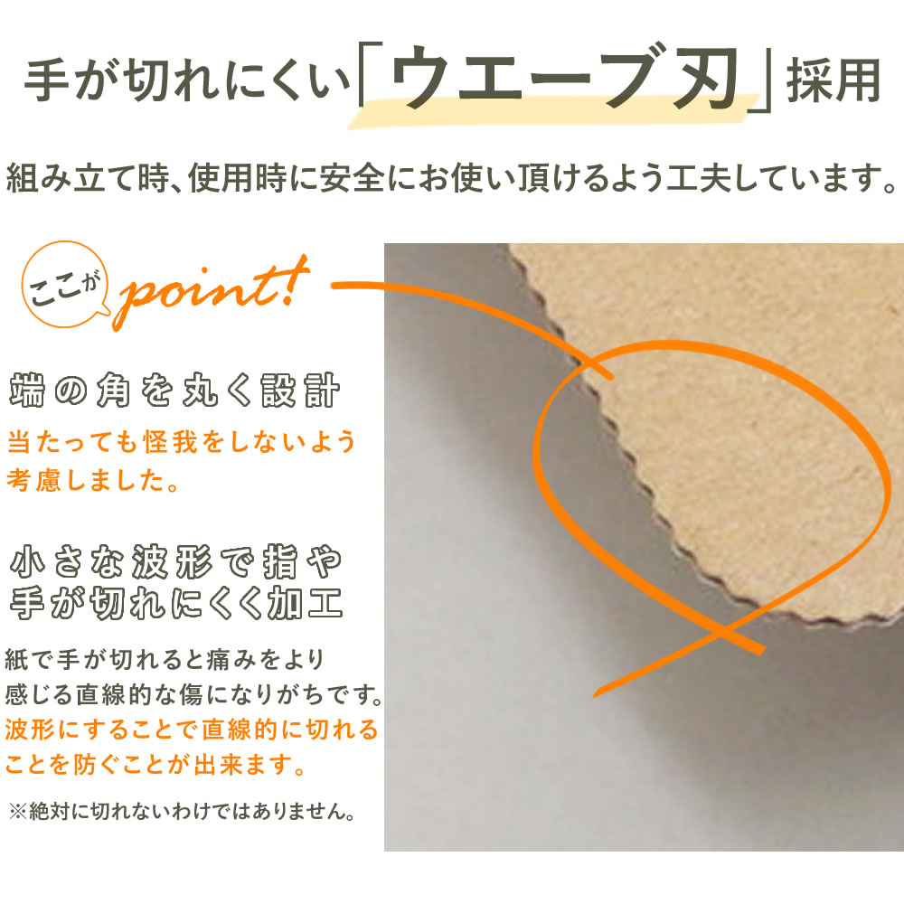 組み立ての際、ダンボールの端や角でケガをしないよう十分にご注意下さい。