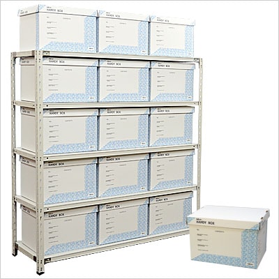 ●スチール製5段棚(ボルトレスタイプ) ●幅1500x奥行450x高さ1500mm ■組立てが簡単なボルトレスシステム ■レイアウトも自由自在で棚板は5センチ間隔で可動OK、棚板の増減も自由です。 ■棚板一段当たりの耐荷重150kg ■棚板前面にカード差しがついていて、物品の分類に大変便利です。 ■カートンシェルフ一台に当社置替用保存箱が20箱収納できます。 ■塗装色はアイボリー系ですのでオフィスにもよくマッチします。 |