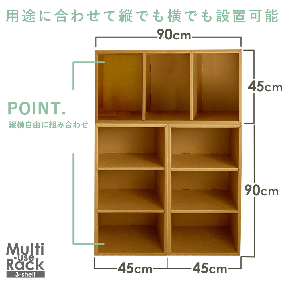 幅90cm×45cmで縦にも横にも使えます。比率が同じなので積み重ねると大きなマルチ収納が可能!入れたいもののサイズに合わせて縦置きト横置きを組み合わせることで、バリエーションを増やせます。